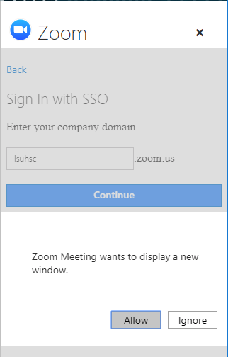 You will be prompted to "Allow" Zoom Meeting to display a new window. Select "Allow"