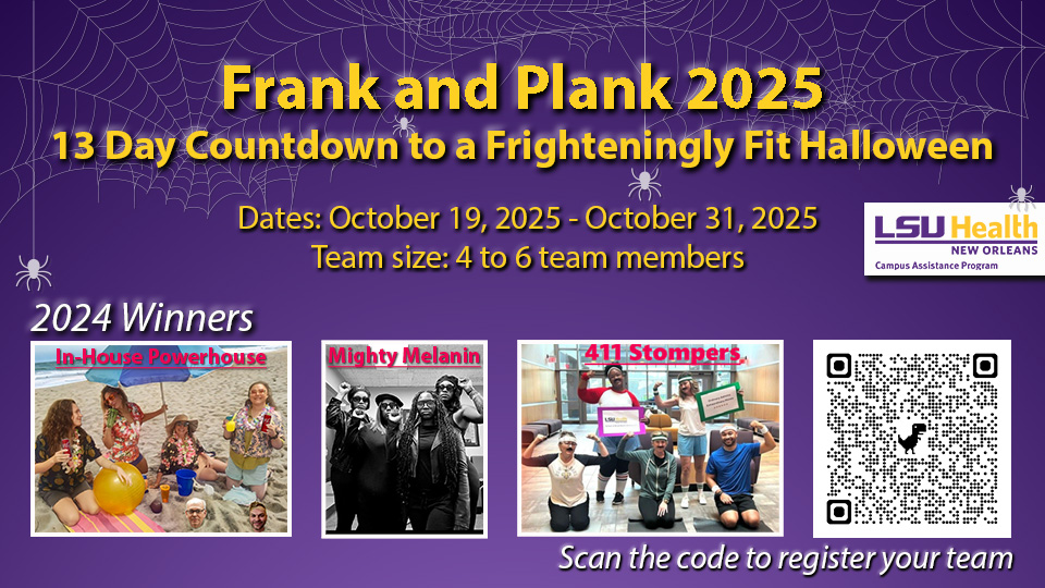Join Fitness Fridays every first Friday of the month at the LSUHSC Wellness Center. Next time: November 7th from 7:00 am to 9:00 am.