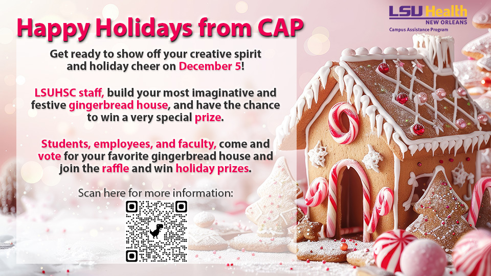 LSUHSC staff, build your most imaginative and festive gingerbread house, and have the chance to win a very special holiday prize.